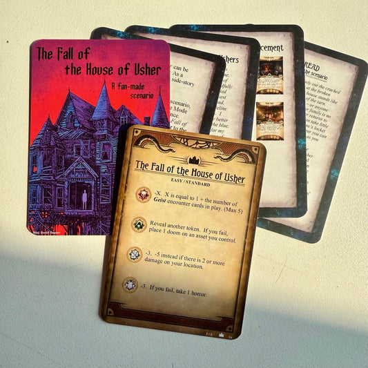 The Fall of the House of Usher - Standalone Scenario (Arkham Horror Fan Made Custom Scenario) - 60Pcs - 5 Guide Cards Included.