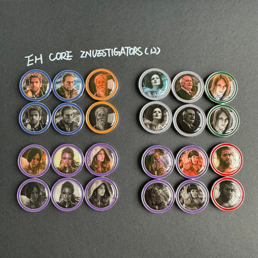 55 Eldrich Horror Investigators, Double Sided Metal Upgrade Tokens
