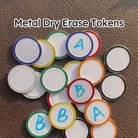 Metal Dry Erase Tokens, Ability Counters - for Board Games, RPGs, TCGs, MTG, Storage Box Included, 5 Free Markers For Set Over 30 Tokens