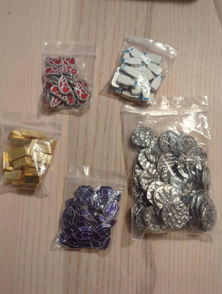 These coins and food tokens are beautiful. The coins especially are so satisfying to use it really elevates the game. They are totally worth adding to the game.