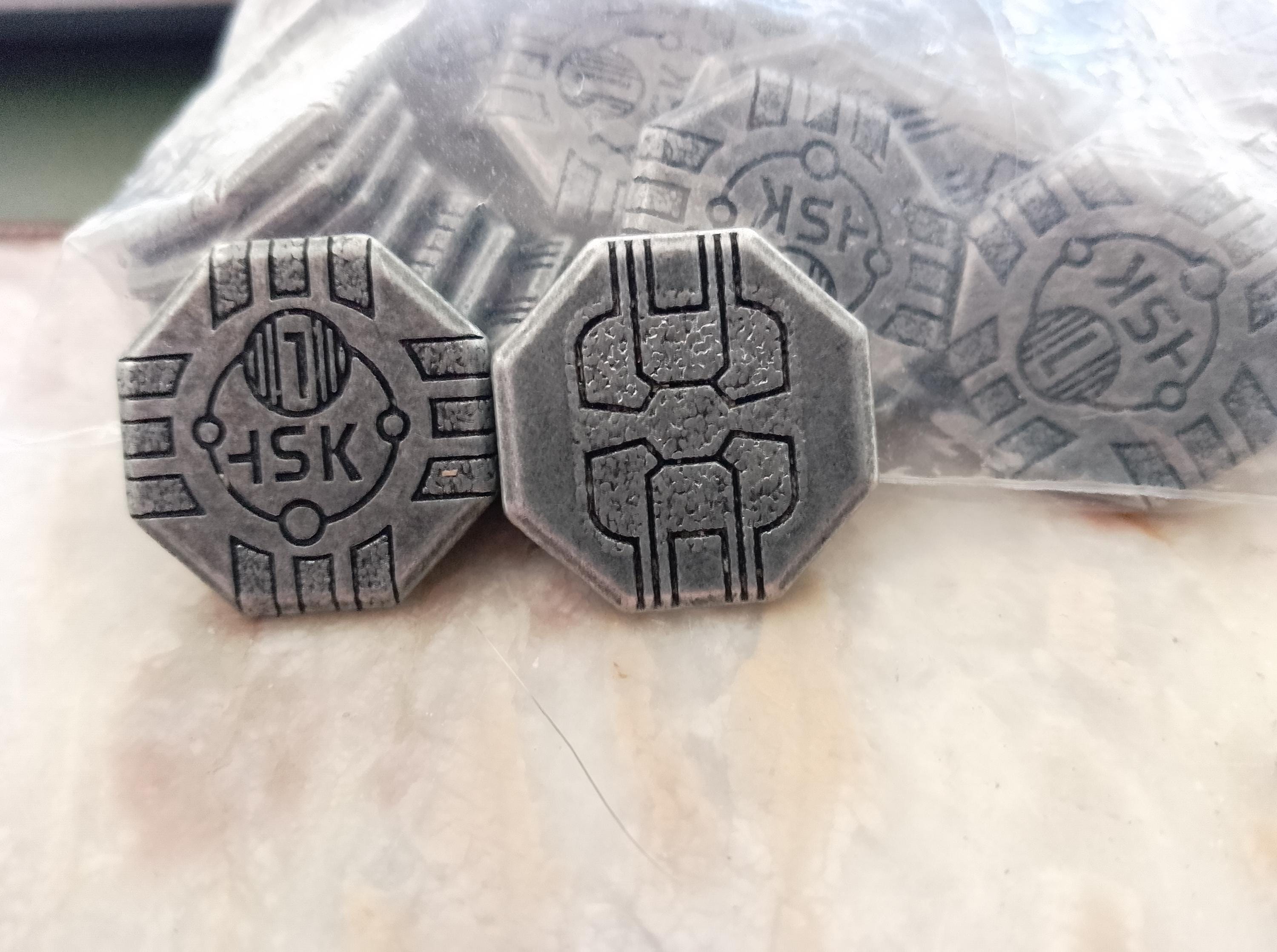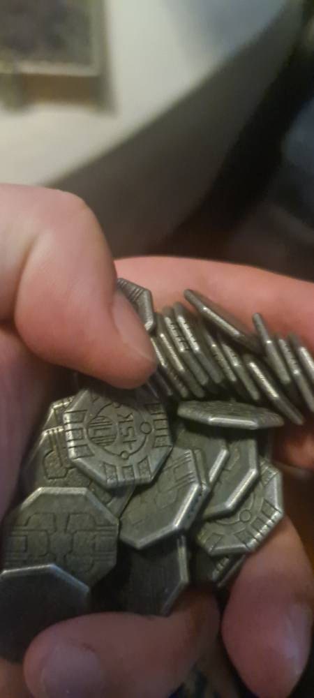 Coins are a little smaller than the original tokens, so if you own a custom printed holder, these won’t fit. However, these do look a lot nicer and have the same markings as the original coins.