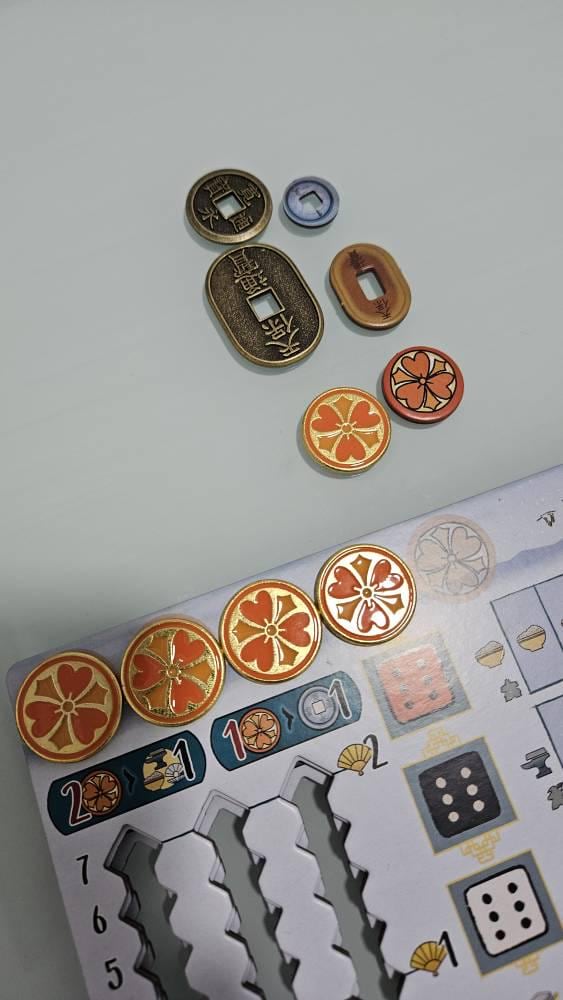 Metal Coins (Japanese Mon) For the White Castle and Rising Sun. You can also use it in IKI, Bamboo and Shogun No Katana.