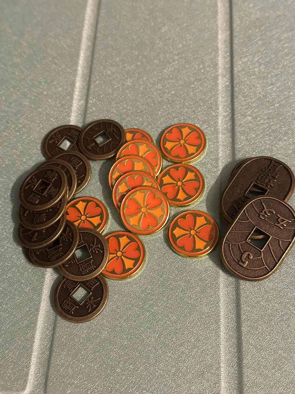 Metal Coins (Japanese Mon) For the White Castle and Rising Sun. You can also use it in IKI, Bamboo and Shogun No Katana.