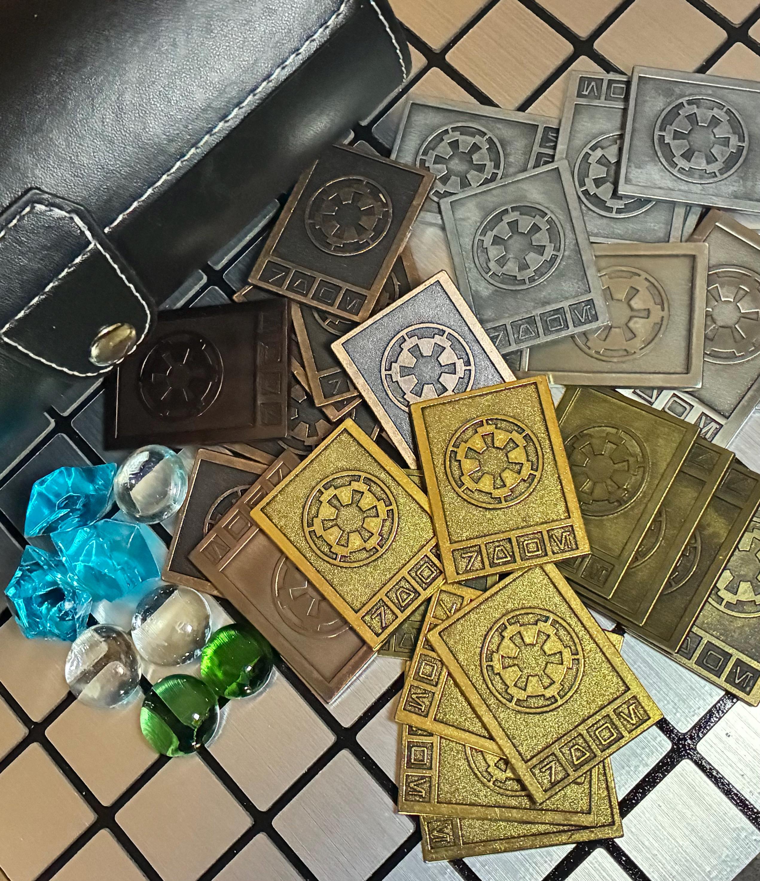 12x Metal Star Wars Imperial Credits Props, Credits for Sabacc, 4 Colour Variations, 2.7mm thickness